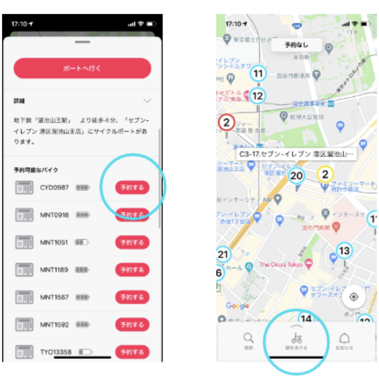 ・予約時に「1日パス(カードキー)で借りる」を選択しておけば、アプリ・会員登録無しで貸し出しできます。(ただしその日の23:59までに返却が必須です)